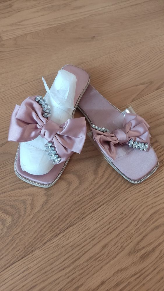 Новые, шелковые, очень красивые шлепки цвета пыльной розы, размер 38 на стопу 24, 5см, экв. 1700