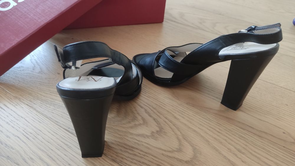Новые кожаные босоножки на устойчивом каблуке, размер 38 (на стопу 24,5) экв. 3500