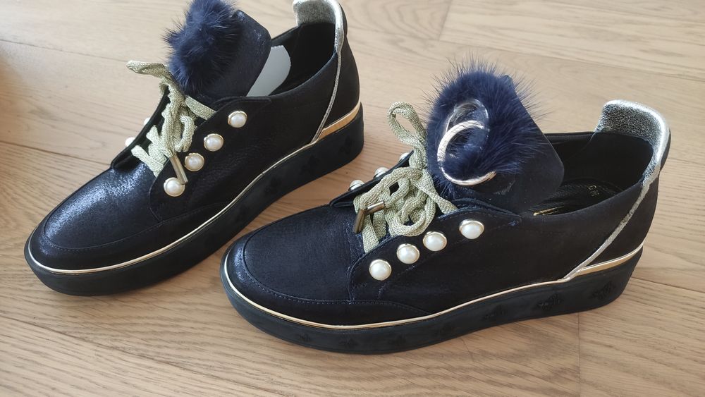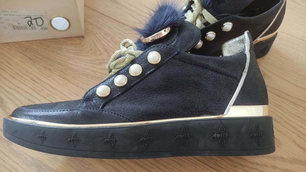 Новые кожаные кеды, темно синего цвета, размер 38 (на стопу 24,5) экв. 7500