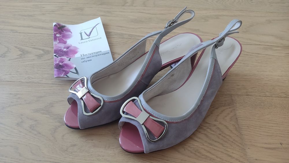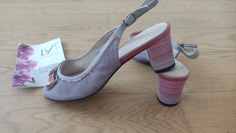 Новые замшевые босоножки на невысоком устойчивом каблуке, размер 38 на стопу 24,5 см. (Коробки нет). экв. 4500