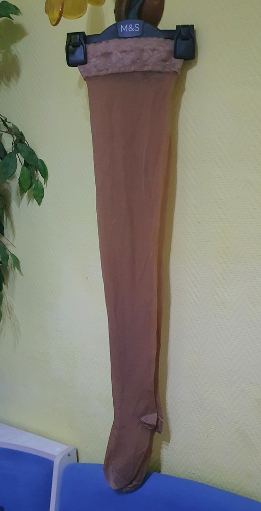 разбараясь в мамином шкафу нахожу много интересного)) чулки качественные,одеты 1или 2 раза на торжества, не носит такие вещи она, да и сейчас поправилась , только гольфы в ходу у нас....постираны и убраны, размер примерный 50-52 ,не сохранилось коробочки 50руб