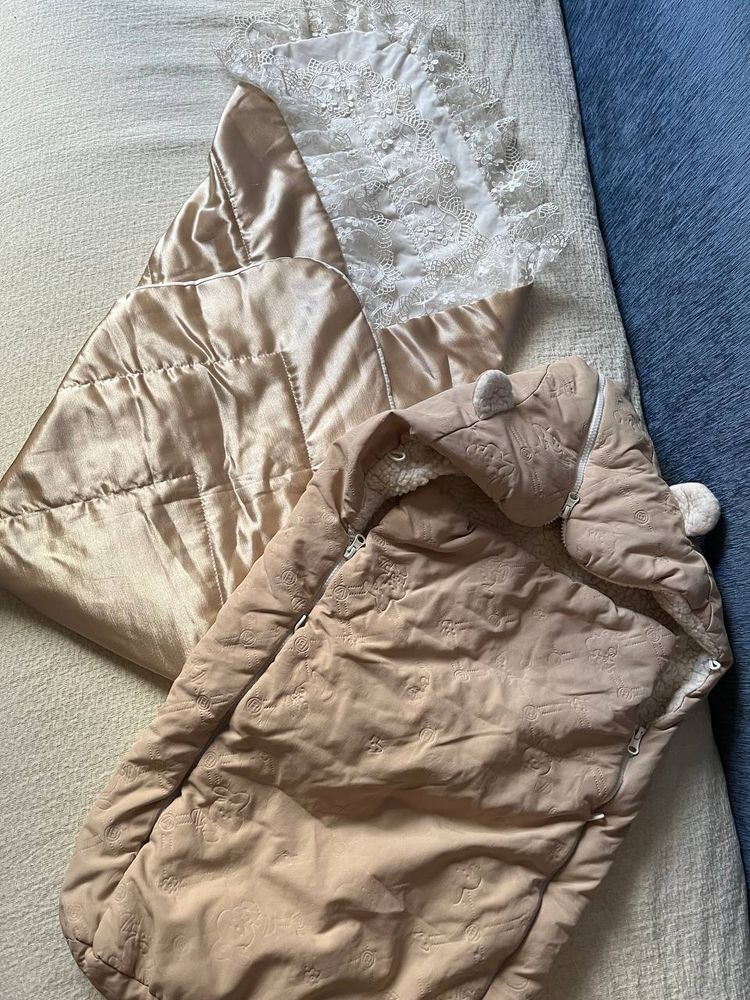 Теплый конверт и одеяло . Бежевый, нейтральный цвет. В отл состоянии.-2000р