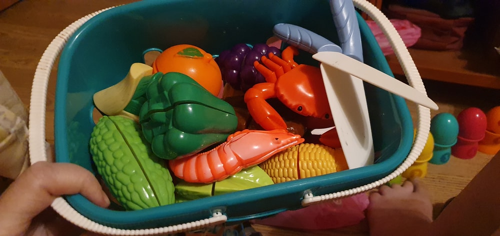 Карзинка с набором-овощей,фруктов и т.д+ ножи.На липучках. Экв 1000 за набор.