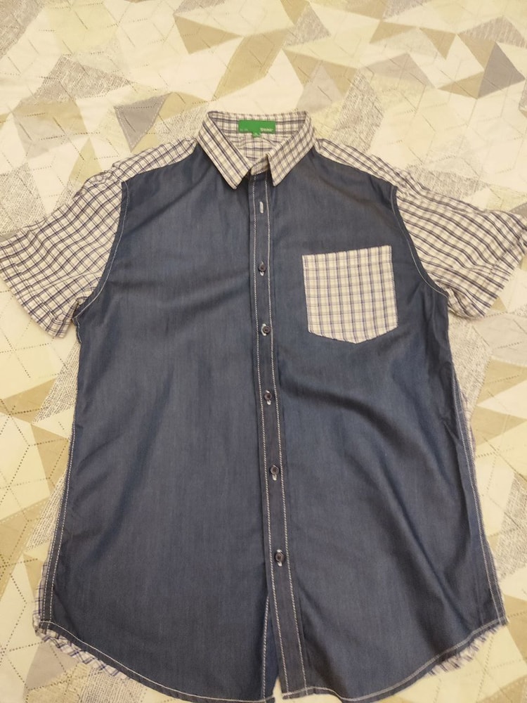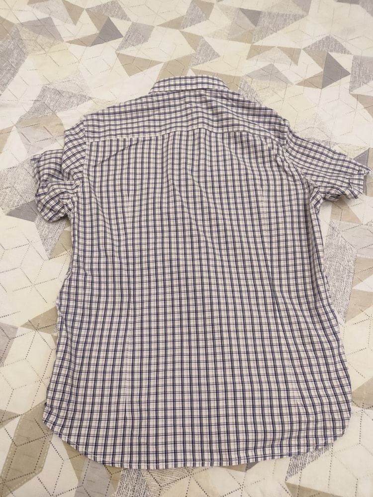 Рубашка новая, но без бирки. Не носилась, так как, мала. Маркировка XL, но идет где-то на 48 размер и рост не выше 178см. Ориентируйтесь на замеры.Плечи 46,5см, ПОГ 53см, длина по спинке 73см. Хлопок 100% 1000 рублей.