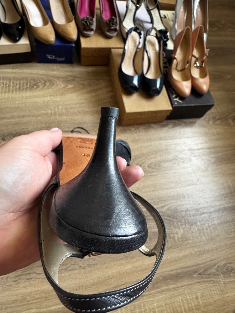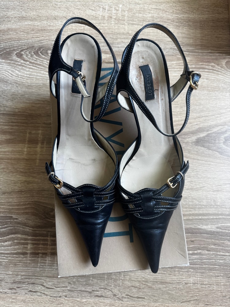 2.Туфли с открытым носом, босоножки, Италия, 40-й размер, по стельке 25,5 сантиметров, высота каблука 11 см, полностью натуральная кожа, очень дорого смотрятся, БУ – экв 3500 руб.