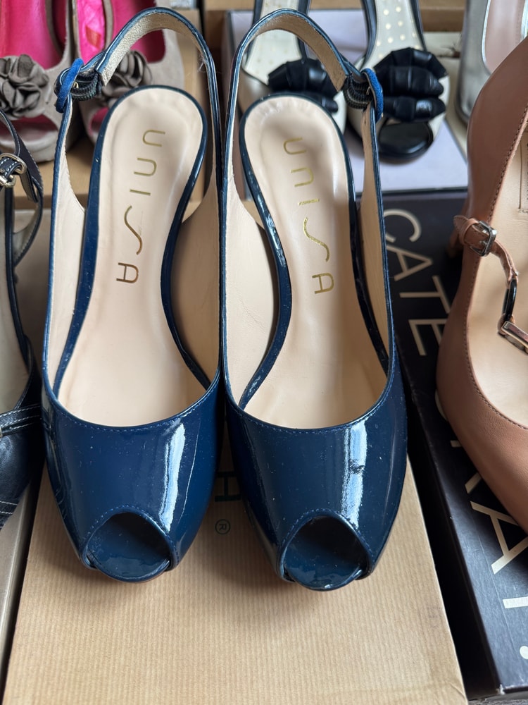 3. Новые Босоножки Unisа, размер 39 полностью кожа, свет тёмно-синий постельки 25 см, высота каблука с учётом платформы 8 см,– 8000 экв