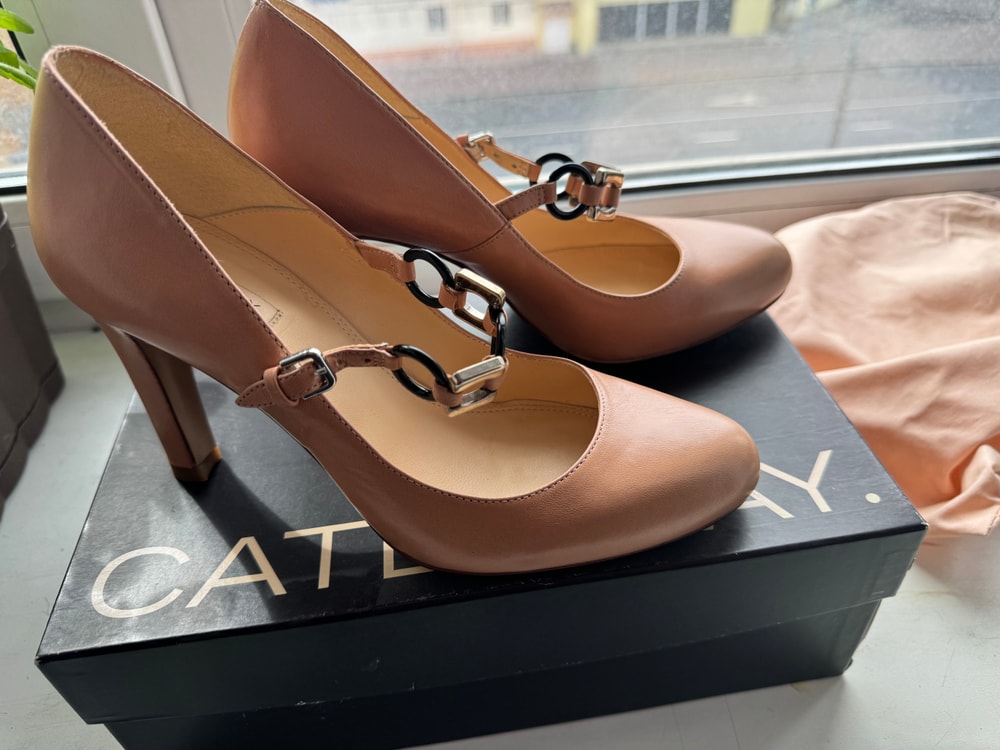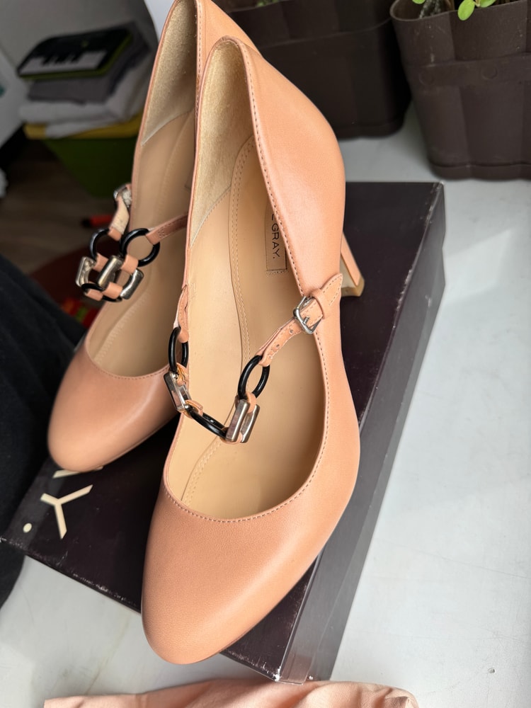 4. Надеты один раз в офисе туфли Испания Cate Grey, размер 40 высота каблука 9,5, сантиметров по стельке 25,5 сантиметров, полностью кожа – 10000 экв