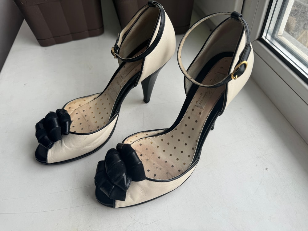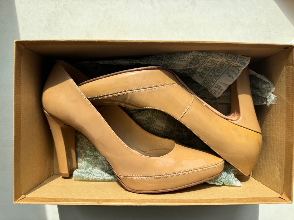 4. Туфли Испания размер 40, полностью кожа, можно на свадьбу, высота каблука 10 см по стельке 26 см, БУ – экв 15000,