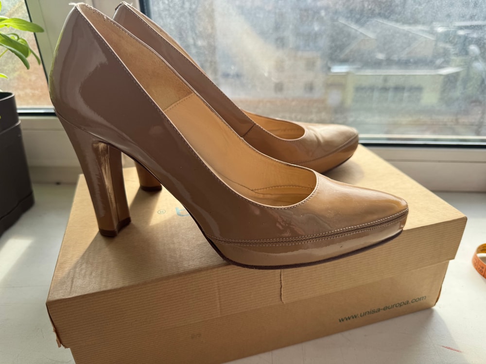 .2. Туфли Unisa, Испания, полностью натуральная кожа, размер 39,5, высота каблука с учётом платформы 8,5 сантиметров длина по стельке 25,5 сантиметров,– 3500 экв