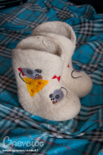 А это самая радостная покупочка. На праздники ездили в Ярославскую область, и в г.Мышкине не удержалась и купила вот такие вот валенки-пинеточки!