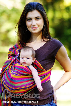 Одежда и товары для беременныхМне подарили очень красивую ткань, привезенную из Малайзии, расписана она вручную, в эту ткань их женщины как-то заворачиваются и носят как юбку или платье, я не очень разобралась, но от ткани просто тащусь))))) Приятная на ощупь, хлопок, прочная, яркая и внушительных размеров. Вот и придумала я сшить из него слинг. Вообще до этого даже не думала о необходимости сей вещи, но уж очень хочу из этой ткани что-нибудь смастерить и носить))) Так вот вот, дайте совет, девочки, правильно ли я поняла: что с 0-3 месяцев лучше всего слинг на кольцах? ПДР у меня стоит на 10 июня, у нас погода прекрасная в это время, гуляй - не хочу, прям около дома и поющие фонтаны, и парк, и много других мест, где можно гулять с детем, да еще и в красивых вещичках пощеголять))) У кого есть или был, как, полезная штука? Я просто вообще не расматривала слинг до этого как предмет нашего гардероба, думала, есть коляс, и все...)) В нете нашла вот этот, ну ооочень понравился: