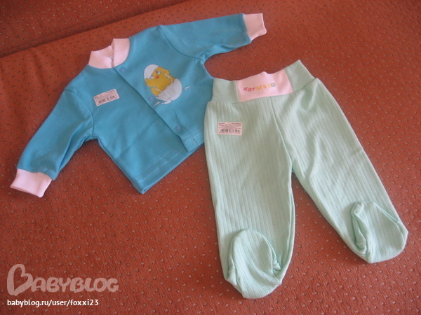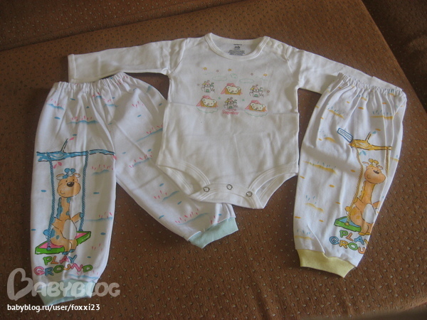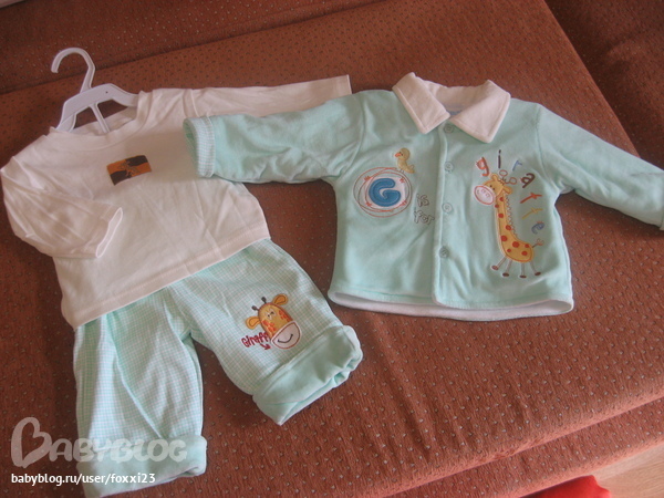Ну и этот комплект на вырост, уже на 6 месяцев, тепленький, от жирафов просто тащусь и по качеству очень приятный.