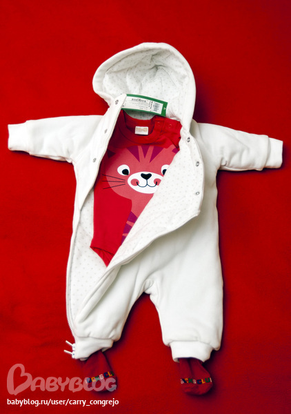 А этот комбезик я просто обожаю, он такой мягенький и цвет у него такой класнючий, на фотке не передать, да и на красном покрывале выглядит средненько, но он правда классный. Хотела его еще в самом начале купить, а тут на него скидка 50%, ну как не взять)