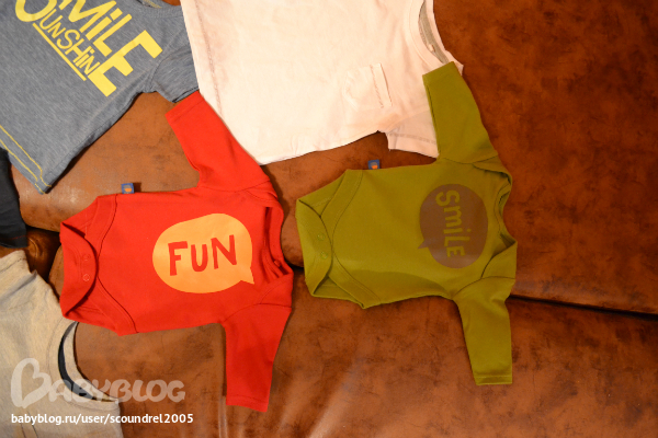 Мы такие радостные!!!! Мужу тоже приятно. Он уже ищет что то похожее в своем гардеробе) Размерчики правда на 3 месяца, только 2 бодика на 3-5 кг. Но мы не смогли устоять! Все просто такое качественное