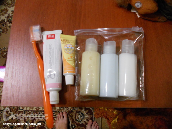 зубная щетка(вчера нашла новую,до этого думала свою положу,потом решила,что так будет спокойнее),