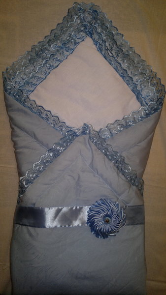 Приданое для малышаДолго думала, что же лучше сшить на выписку малышу, очень хотелось мне конечно пледик вязанный, но так как я роженница не весенняя, надо что-то теплое (октябрь что-то у нас прям холодный), сшила вообщем одеяло-конверт. Отдельно с конвертом не сьала заморачиваться (на один раз его использовать непрактично) А одеялом можно и потом укрывать малыша.