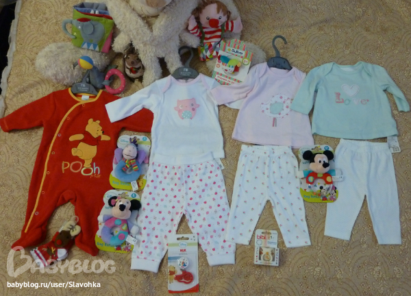 И пижамки мазевские на 0-3 и 3-6, флисовый пух и носочки новогодние, и первые наши погремухи)))