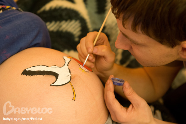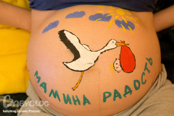 Фоты пузяшМуж так втянулся в образ художника на моём животе (сейчас у нас 38 неделя идёт во всю). Что вчера (я уже даже и не просила, в отличие от первого раза) достал краски и другие недостающие, уложил меня и начал фантазировать, приговаривая: "В прошлый раз была "Папина", в этот раз будет "Мамина":))))