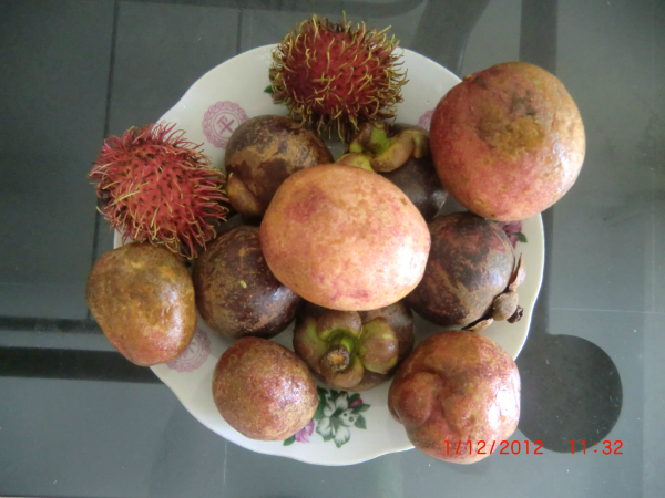 Мангустин (45 бат за 1 кг), рамбутан, маракуйя