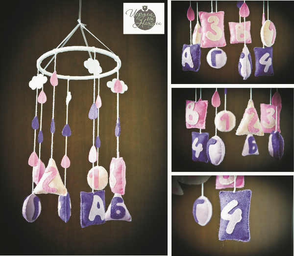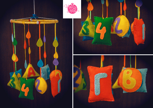 Приданое для малышаДорогие будущеие мамочки! А Вы подумали о первой игрушке своего крохи? Мобиль - это самая первая игрушка малыша. Большую часть времени новорожденный малыш лежит в кроватке и изучает окружающий его мир. Я создаю мобили с учетом того, чтобы ребенок получал первую зрительную информацию о цвете, форме, животных, буквах, цифрах... Во все мобили вложена частичка моей души, моего мира, полного нежности и любви)) А это значит, что они отличаются от бездушных игрушек купленных в сепермаркетах, сделанных для миллиона детей. Больше работ в моем дневнике