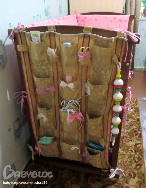 Эти кармашки я сама шила и расчитывала именно на боковину кроватки