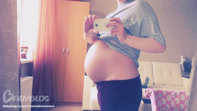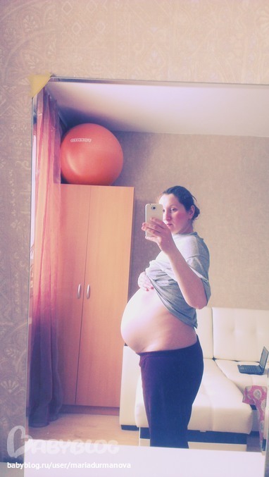 А теперь про пузико, не знаю опустился ли он, все говорят, что опустился! Пробка не отходила, да и вообще не могу сказать, что есть какие-то придвесники родов. Малышка двигается активно ( хотя, чем ближе к родам, тем активность должна снижаться).
