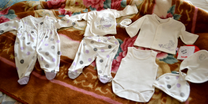 Наборчик-восьмипредметник в горошек,еще не решили что конкретно оденем)) и конверт-трансформер,превращается в пледик