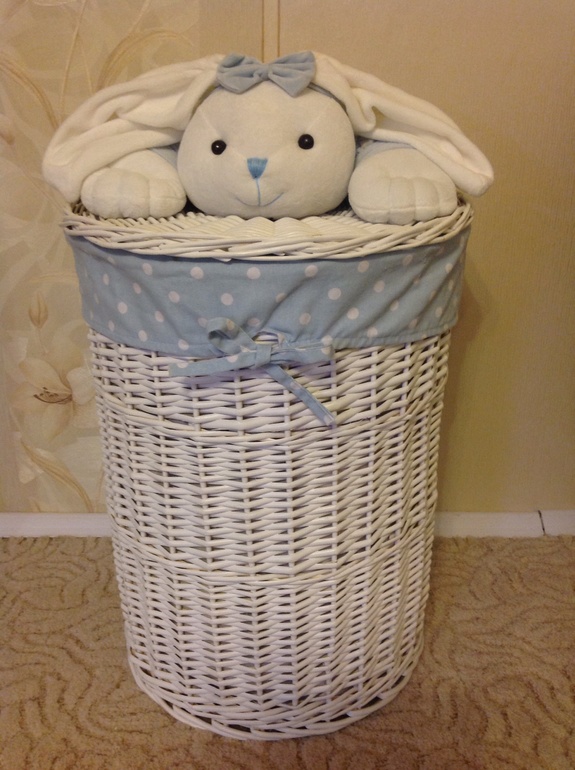 Так как комод мы еще не купили, все вещички пока что лежат в чудо-корзинке с зайчиком. Купили ее в эпицентре, я просто не смогла пройти мимо. Правда хотели купить с мишкой, как на картинке с постельный бельем Tutto Lina Teddy Bear, но когда вернулись покупать - такой уже не было. Но она все равно очень миленькая, ну прям няшка)))