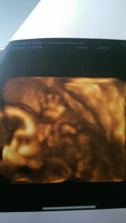 Очень подвижный,настоящий футболист. Показал все,чему он научился: пинаться ножками, сосать пальчик то на ручке,то на ножке, махать ручками,жевать! Вы видели,как малыш в животике жует?Я в этот момент тоже хотела есть)))