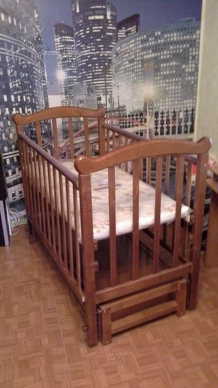 Кроватка классная! Так высоко- удобно малыша положить не перевешиваясь:)
