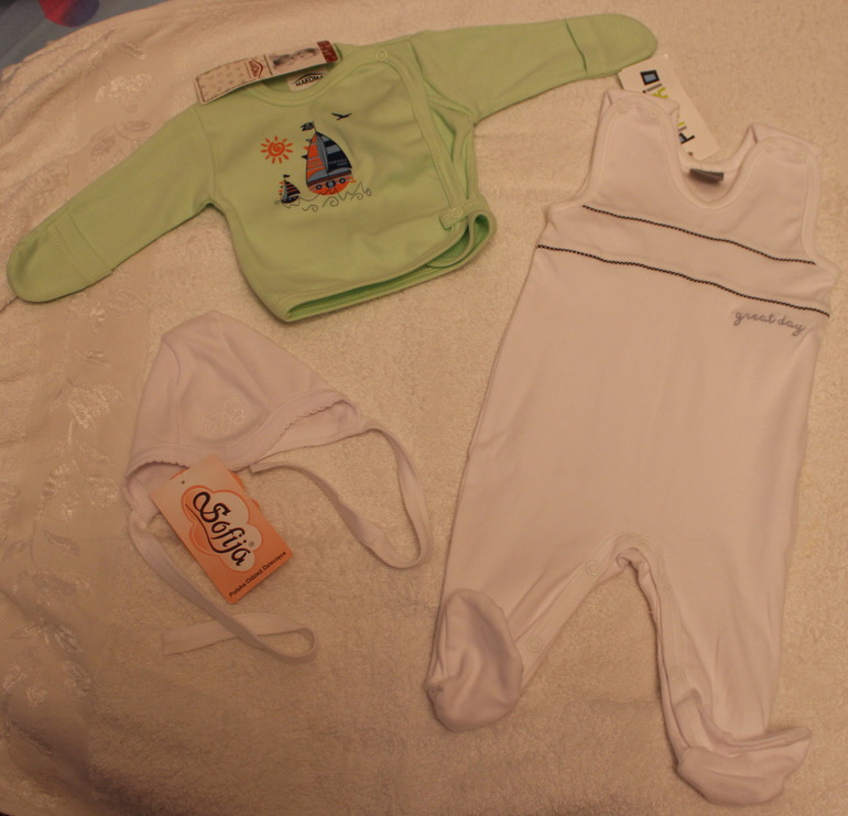P/S: Зашла в магазин и накупила немного очень классной польской одежки! На выписку белые ползунки и чепчик. Еще кофточку осталось беленькую найти...