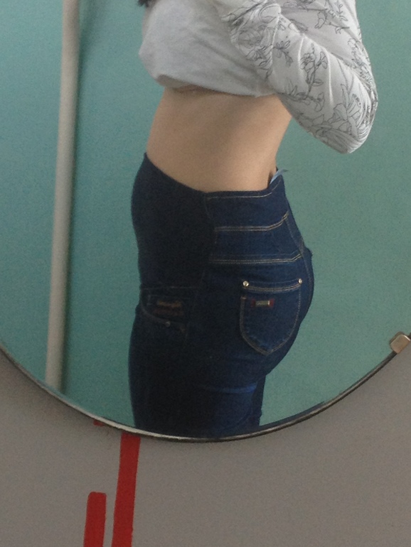 Ну и напоследок фото пузика - еще маленький, но вот джинсики пришлось купить, ибо сидеть в своих обычных уже невозможно =)