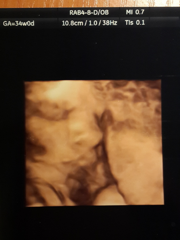 Какая же моя принцесса сладкая. Весим мы уже 2500, спрогнозировали,что к рождению будем где-то 3800... ой ёй)) ножки у нас длинные, сказали высокая будет)) в наши 34 недельки ножки аж на 37 и 6. А в среднем показатели соответствуют 35 нед. И наш ПДР передвинулся на неделю раньше, на 4 декабря. Лежит малышка вниз головкой, сказали что уже низко, поэтому и фото не получалось(( Но вот самое удачное