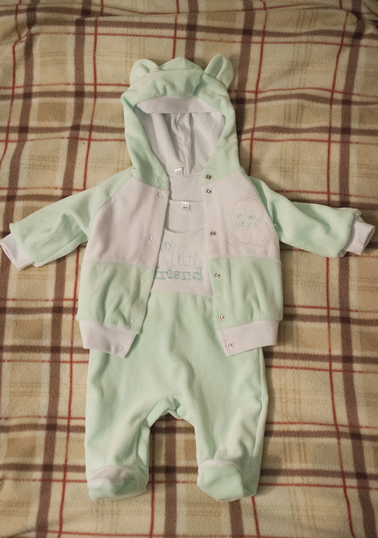 Еще на днях забрела в Дочки-сыночки и купила такой комплект - велюровый комбез и кофточка, р-р 62.