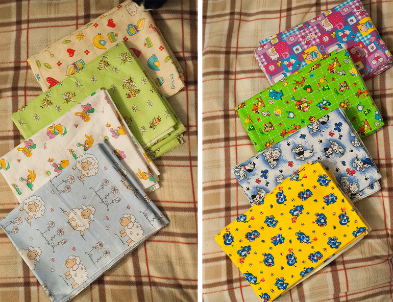 Пеленки. Купила ткань, разрезала и отдала на оверлок. Получилось по 8 штук тонких и теплых. Хватит?