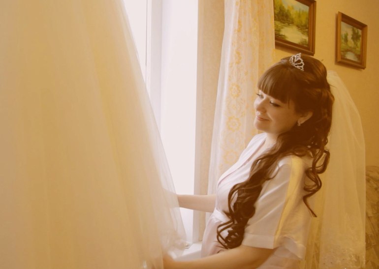 Муж проснулся в 7 часов, пошел в ванну, а я еще дремала. Потом мы вместе позавтракали и в 9 утра он поехал собираться к свидетелю. В 10:00 ко мне пришла визажист, потом подошел фотограф и видеооператор, а потом вообще все шли друг за другом и я уже не отвлекалась что бы открыть дверь))) подруги готовились к выкупу, фото-видео что-то снимали и смешили нас, вообщем было весело))) но самый прикол был с моим братом, мы нарядили его в свадебное платье, фату и перчатки, одели парик