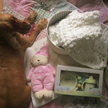 Из всех приготовлений только купили кроватку еще в начале марта, комод, матрасик и всякие постельные принадлежности. В общем все, что можно было притащить из икеи) Потихоньку вяжу мягкий белый пледик(на кой фиг пока не знаю, теплый очень, летом точно не используешь, но пряжа такааая мягкая была, не удержалась) Также на фото розовый медведь, которым мы отметили тот факт, что ждем девочку и набор посуды, который понадобится еще фиииииг знает когда, но не привезти ничего малышке из Диснейленда я не могла)) И еще один плед ручной работы(друзья подарили). Ну и куда ж без верного пса))