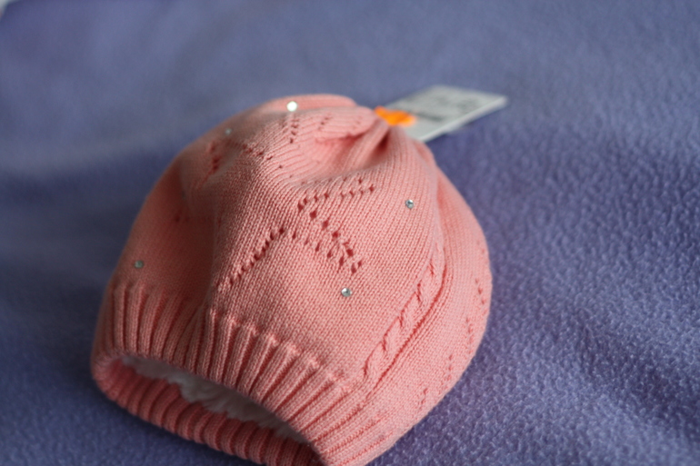 Не знаю, прям бзик какой-то на шапочки, боди и носочки)) А на эту хорошая скидка была, вот и решила - возьму. Не понадобится розовая, подарю кому-нибудь) Цвет нежно розовый, комнатное освещение немного исказило его.
