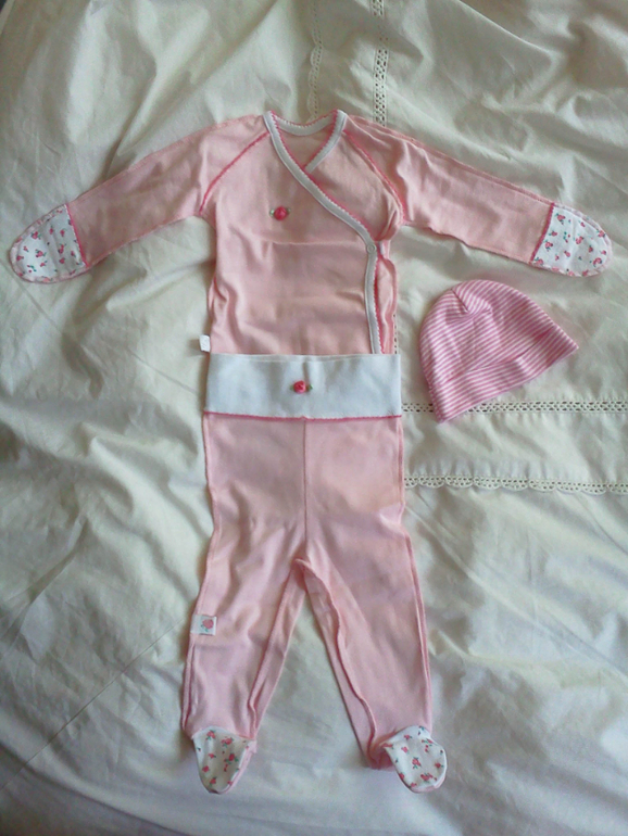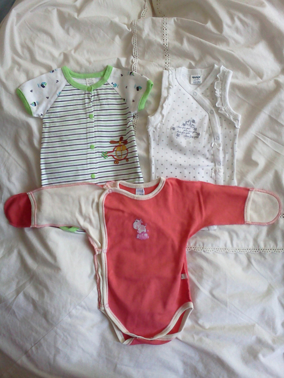 на счет размера — не факт, что будет велик) у меня например наоброт. у меня дочь родилась 57 см, а я к сожалению накупила много вещей 56-го размера. обидно так, мы в них с рождения не влезли((((( так и лежат ни разу не одетые((( мы с рождения носим размер 62.от себя добавлю автору лично свое мнение: я против штанишек и кофточек, но только потому, что у меня дочь с шилом в попе)) кофточки у нас всегда скатываются вверх, штанишки вниз. царапки снимает, носки тоже слазят) поэтому я оооочень люблю "человечки", которые она сама не снимет) а если у них еще и ручки-ножки закрыты — так вообще песня))) пусть дрыгает ногами сколько хочет, и не надо будет поправлять одежку каждые 5 минут.