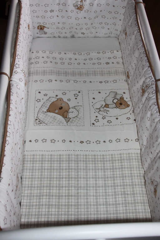 Постельное белье муж постелил так, что бы красиво было, что бы оценить всю красоту колыбельки :) А так я белье буду снимать еще, стирать и гладить. Постелит и пыль вытирать будет муж, когда я в роддоме после родов буду :) Плюс она стоит в углу в пустой пока комнате и никто об нее не спотыкается :)Мебель придет только в конце августа, думаю что лучше заранее, чем в последний месяц бегать, нервничать и все заказывать.