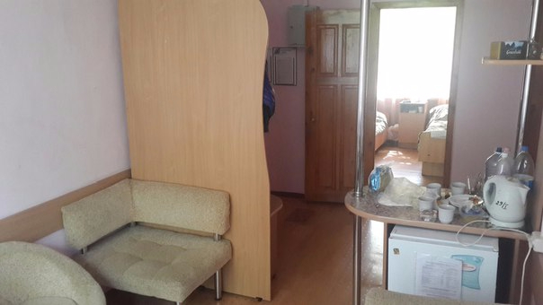Но большинство времени я отдыхала в комнате в одном из 1-этажных домиков. Несмотря на много плюсов лечебного корпуса, здесь мне понравилось даже больше. Да бывало прохладно, но я была к этому готова и запаслась теплой одеждой)))) Домик разделяется на 2 одинаковые половинки, где имеется: веранда ( где стоит сушилка для белья) совмещенное в одной комнате: коридорчик с достаточно удобной гардеробной стенкой, стойка-миникухня (где стояли холодильник, чайник и казенная посуда) и зона отдыха с диванчиком креслами столиком и телевизором, 3 комнаты ( 2 на 2 человек и 1 одноместная) ванная комната (+ в том что в домиках стоит ванна, когда как в леч. корпусе была очень маленькая душевая "кабинка" где было жутко не удобно), туалет.