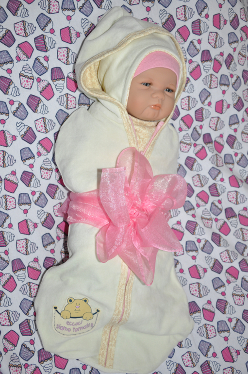 ПДР 12 июня, будет хлопковый слип и тонкий вязаный плед. Без ленточки)) Если холодно, наденем еще вязаную кофточку и пинетки. Ленточку просто не могу подобрать нужного цвета, ничего не нравится. Так бы в машине развязали)) Люблю вязаные пледы и ленточки. Так дочу выписывали.