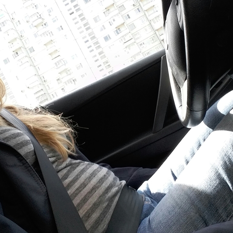 Ногам, что удивительно, ни адаптер, ни ремень в таком положении не мешают (а я переживала за это). За рулем находиться очень комфортно.