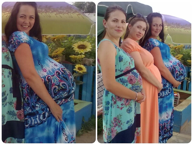 У меня гигантский пуз был. Это от отеков. И многоводие было. Но я не парилась.