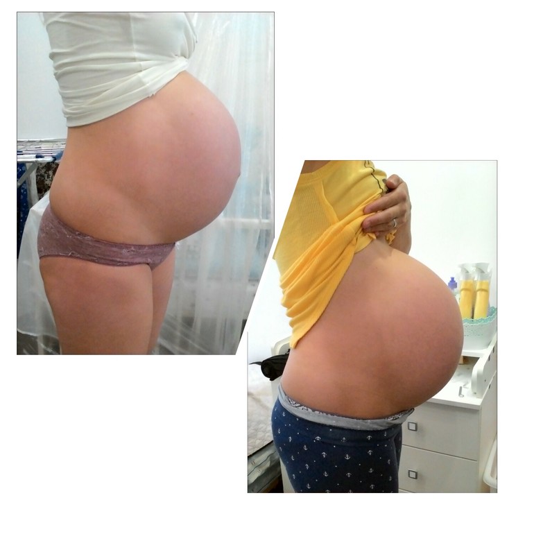 Живот еще вырос. Слева выше - сейчас, справа ниже, около недели назад. Сори за обнаженку)))) Сына, тормози, мать твоя боится что щеки твои не пролезут...