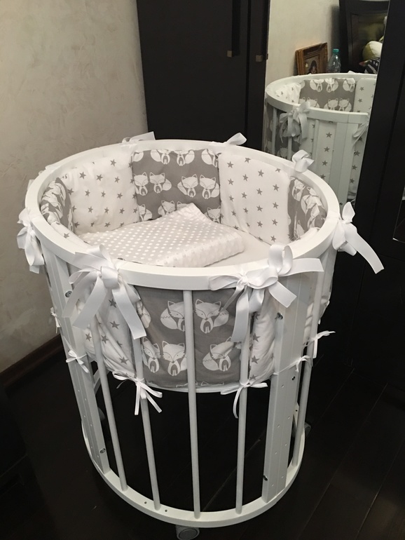 Приданое для малыша37-ая неделя пошла, все пакеты в роддом собраны, все вещи переглажены. Позавчера собрала кроватку и поняла что кроватку то я купила, а вот ни простынка ни бортики от старой стандартной коляски туда не подходят, пришлось срочно доставать из шкафа швейную машинку и начинать шить, вот что в итоге получилось: