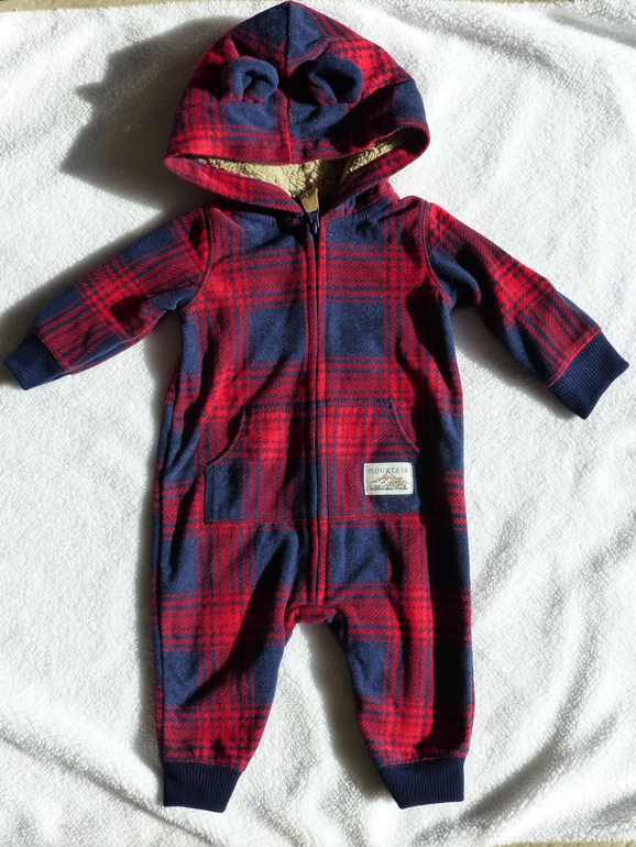 Ну и теплый двухслойный из флиса комбинезончик с утепленным капюшоном, не хотела брать, вроде летом супер холодно не бывает, но муж настоял, так как было дешево на распродаже взяла)