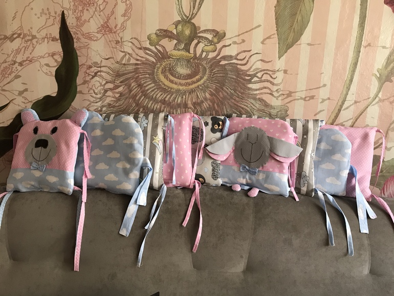 Приданое для малышаНу не получается у меня дружба с трикотажем! Ползунки кособокие, игла от оверлока прорубает дырки, шов тянет, кнопки не хотят вставать на своё место, и вывяливаются.... то ли дело бязь! Не тянется во все стороны, знай, рви по долевой! Ждём не дождёмся когда Папа с средним сыном займутся изготовлением колыбельки для малышки. Они у нас «долго запрягают...» или просто неохото в неотапливаемом гараже мастерить, не знаю. Время у них на раздумья, подбор деревяшек и фанерок есть ещё, пусть думают. Ну а у меня, в руках ЧЕС!!! И работа кипит. Матрасик 100*50 для колыбельки готов, дело за бортиками. Куплено четыре бязевых отрезка по 1,2 метра, и ещё бракованный остаток с облачками из которых в итоге вышло 4 простыни 1*1,2 и набор подушек 30*30 см. Подушки - чехлы, внутри, лоскутные отрезы строчёных одеял, купленные на вес( промотходы) себестоимость вышла: подушки и матрасик270 рублей, и бязь 600 рублей, а да!!! Горсть старых пуговиц и все!