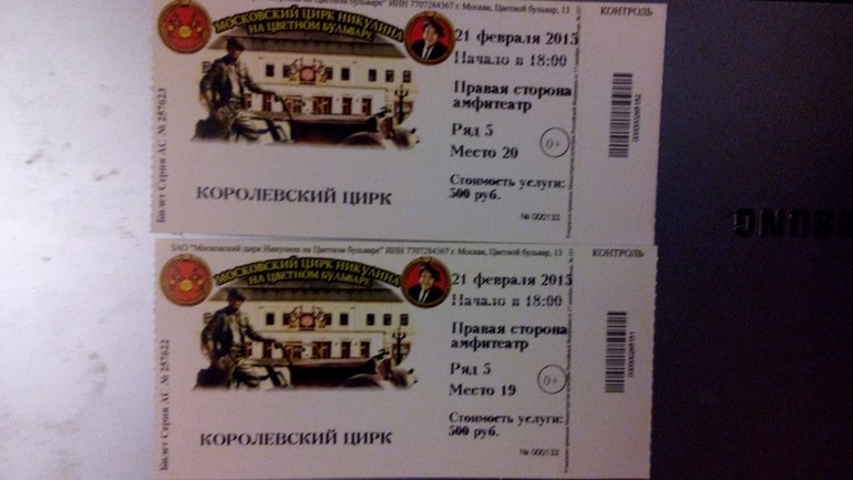 продам 2 билета в цирк на цветном на 21.02 в 18.00