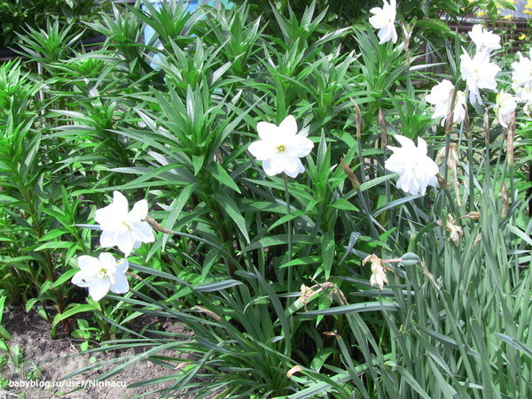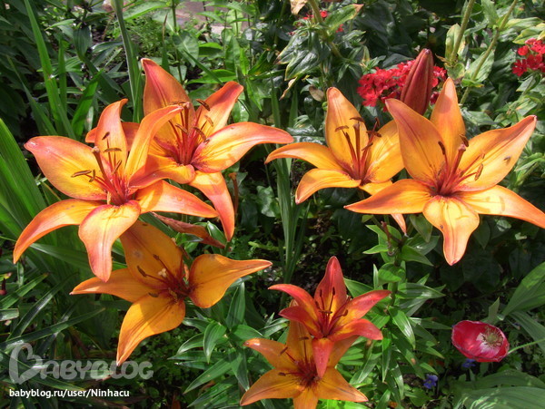 Лилии, маки, флоксы, фиалки, еще кто-то отцвел и прячется.